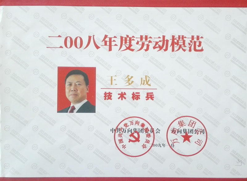 榮獲2008年度萬向集團(tuán)勞動(dòng)模范證書